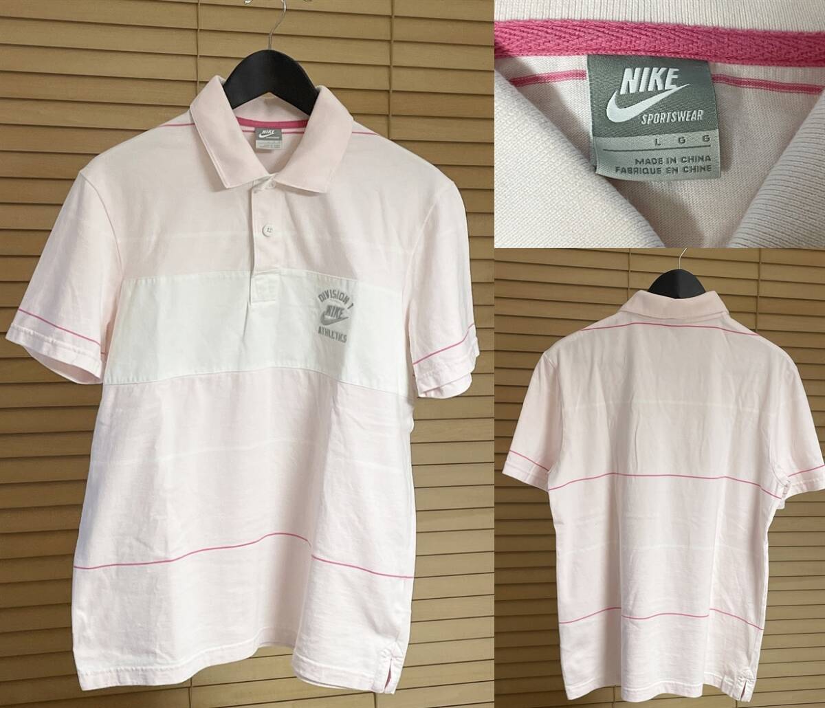 - 【激安1点のみ 国内正規品】NIKE SPORTSWEAR ナイキ スポーツウェア ボーダー 半袖 ポロシャツ ラガーシャツ L ピンク系 コットン100%
