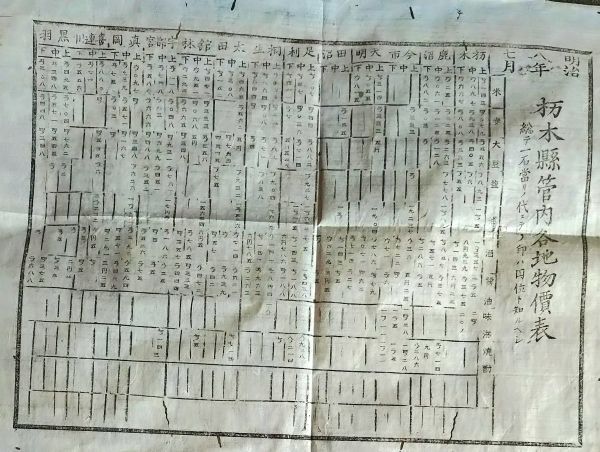 - f25070301〇明治布告布達 栃木県管内各地物価表 明治8年 栃木県〇和本古書古文書