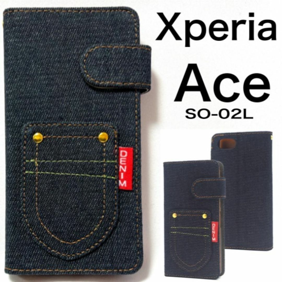 > Xperia Ace SO-02L ジーンズ 手帳型ケース/エクスペリア スマホケース
