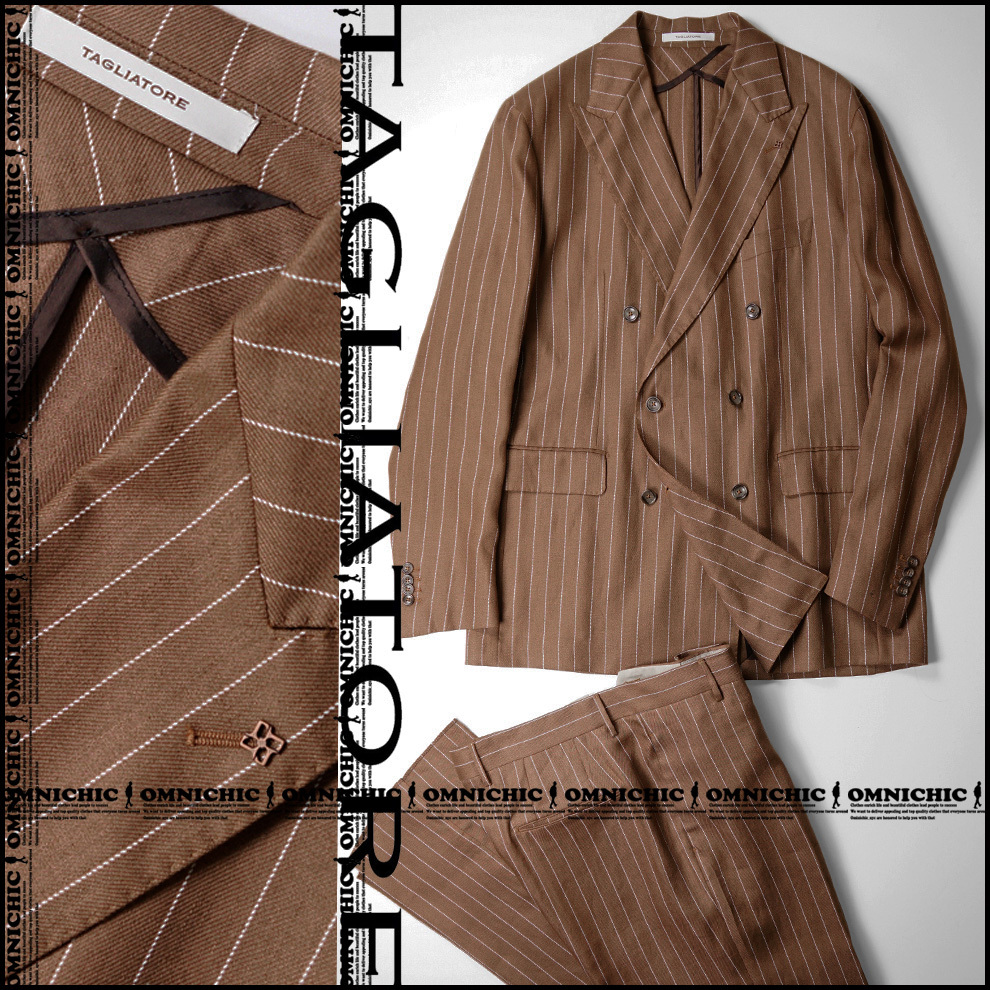 - 最高級PINO LERARIO/春夏リネン■新品17万【TAGLIATORE】タリアトーレ色気漂う麻の風合い/極上ストレイプダブルスーツ52/ジャケットパンツ