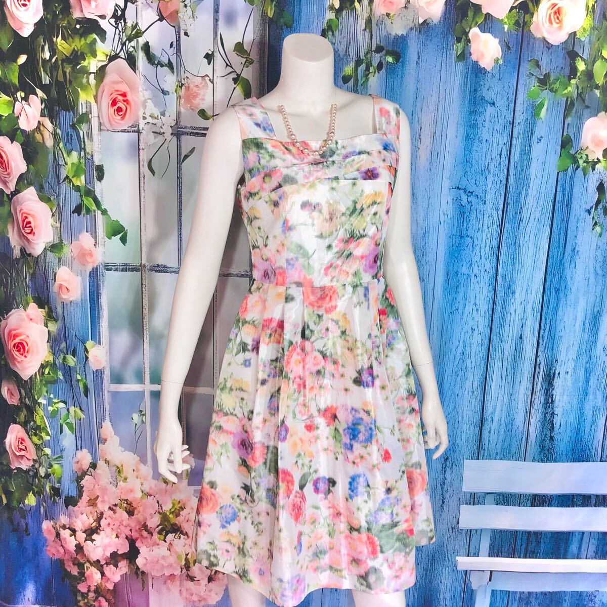 - FRANCO FERRARO ホワイトソフトフラワーシャイニーワンピース L