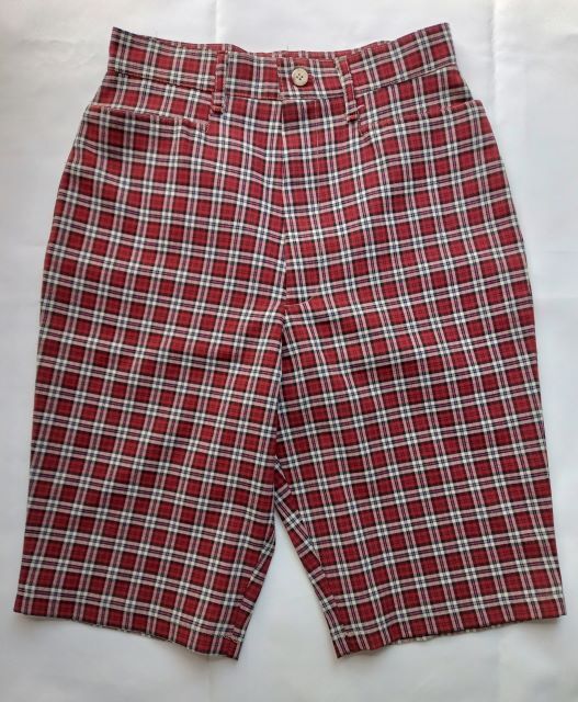 - PLAY CHESS 赤系チェック バミューダパンツ ポケット付き Mサイズくらい