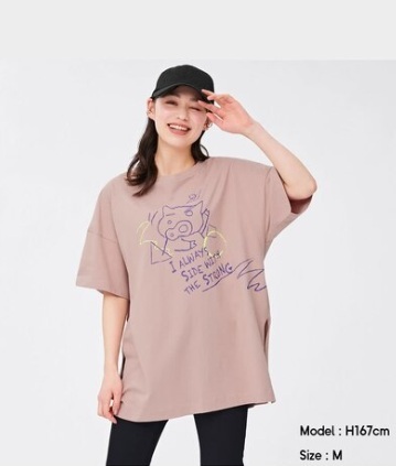 - 送料込み・未使用 GU オーバーサイズグラフィックT(5分袖) CRAYON SHINCHAN 2 綿100% カラー: 11 PINK S