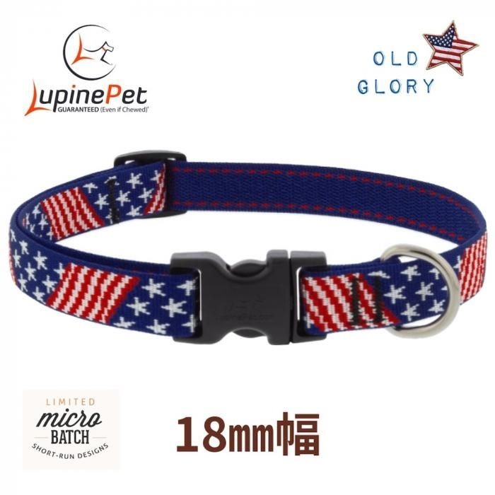 > ワンタッチ首輪・Mサイズ・18mm幅オールドグローリー柄 33-56cm LUPINEルパイン アメリカ製 軽量 丈夫 中型犬 Old Glory