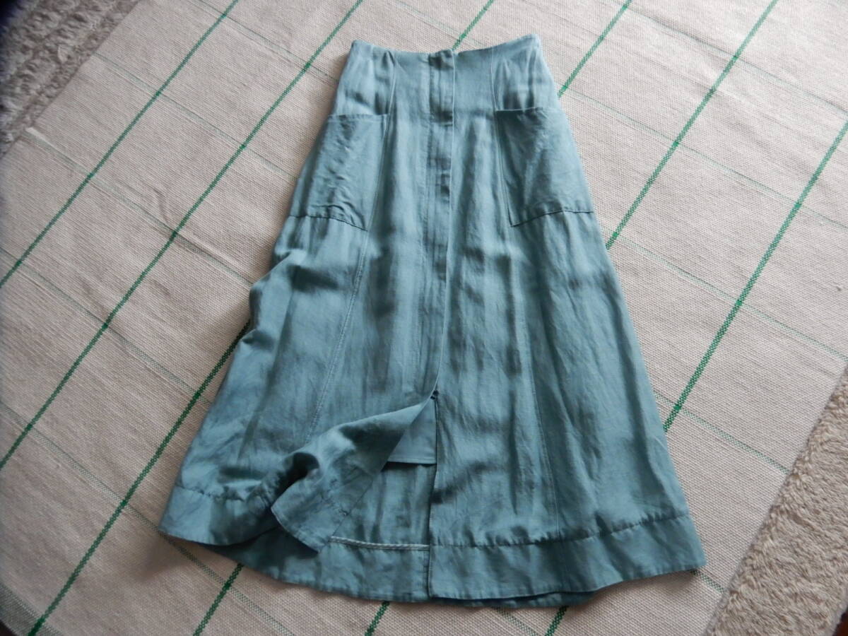 - 【Mila Owen/ミラオーウェン】リネンブレンド大人可愛いセミフレアーロングスカート ターコイズ 0 S-M