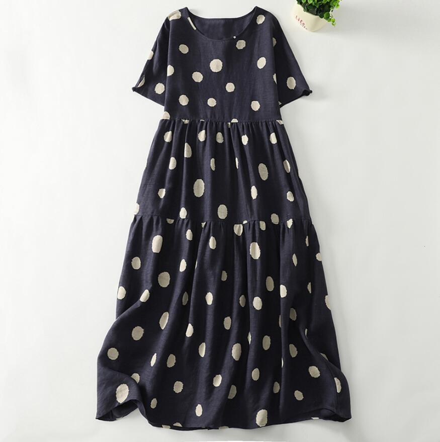 - 人気推薦 / オシャレ 水玉柄 ロングワンピース 夏新品 ドット柄 Aラインワンピース 半袖 マキシ丈 通勤 ワンピース ミモレ丈 ワンピース /