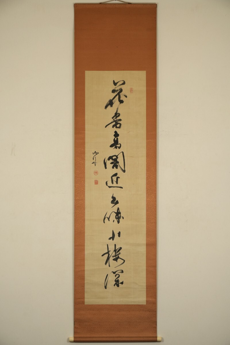 - 【真作 絖本】掛軸「勝海舟 一行書」幕末明治 幕臣 政治家 軍艦奉行 幕末三舟 書