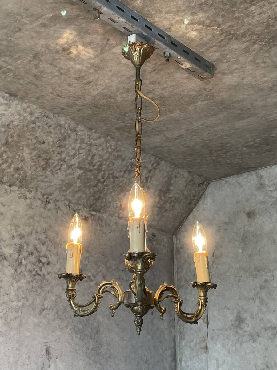 - 20. フランス アンティーク シャンデリア 3灯 キャンドル ライト 吊り下げ シーリング ブロンズ 店舗 什器 美容室 カフェ