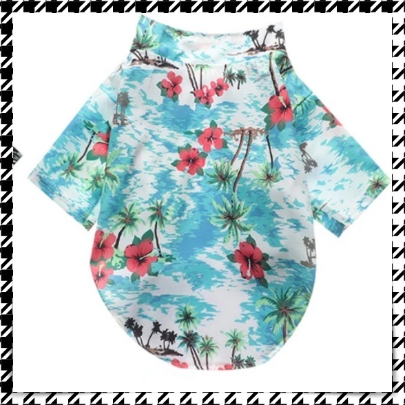 - 犬 猫 ペット 服 半袖 Tシャツ アロハシャツ ハワイアン トップス S M L 小型 中型 花柄 ハイビスカス お揃い リンク コーデ リゾート
