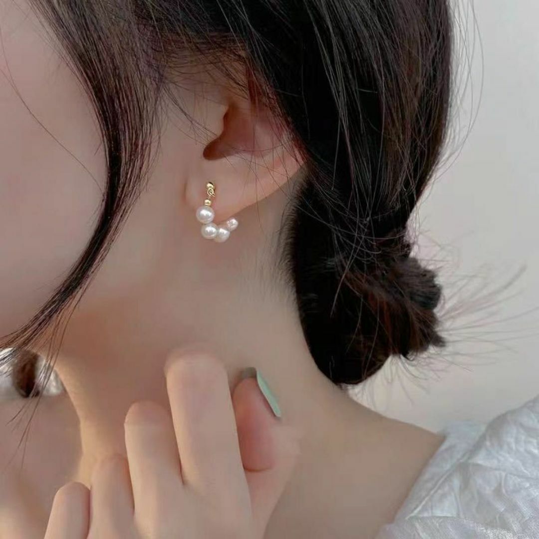 - イヤリング フェイクパール 4粒タイプ ゴールド 痛みが少ない 上品