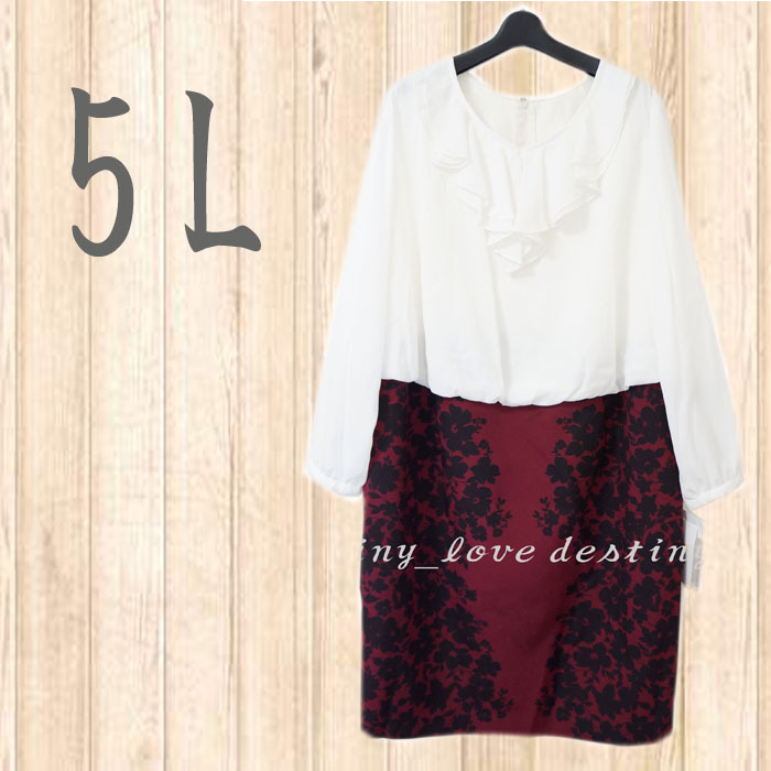 - ●新品/ワンピース/フリル衿/5L/オフ白/赤系/花柄/レディース●x0033