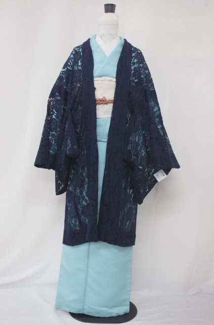 - お仕立て上がり 0886 レース長羽織 紺 レターパック不可