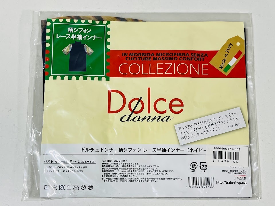 - ★Dolce donna★ ドルチェドンナ 柄シフォンレース半袖インナー ネイビー 紺 イタリア製