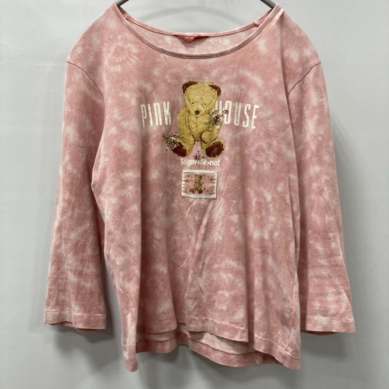 - ●PINK HOUSE /ピンクハウス/くま×ワッペンモチーフ七分袖カットソー/ワッペンモチーフ/くまプリント/タイダイ/長袖カットソー/Tシャツ
