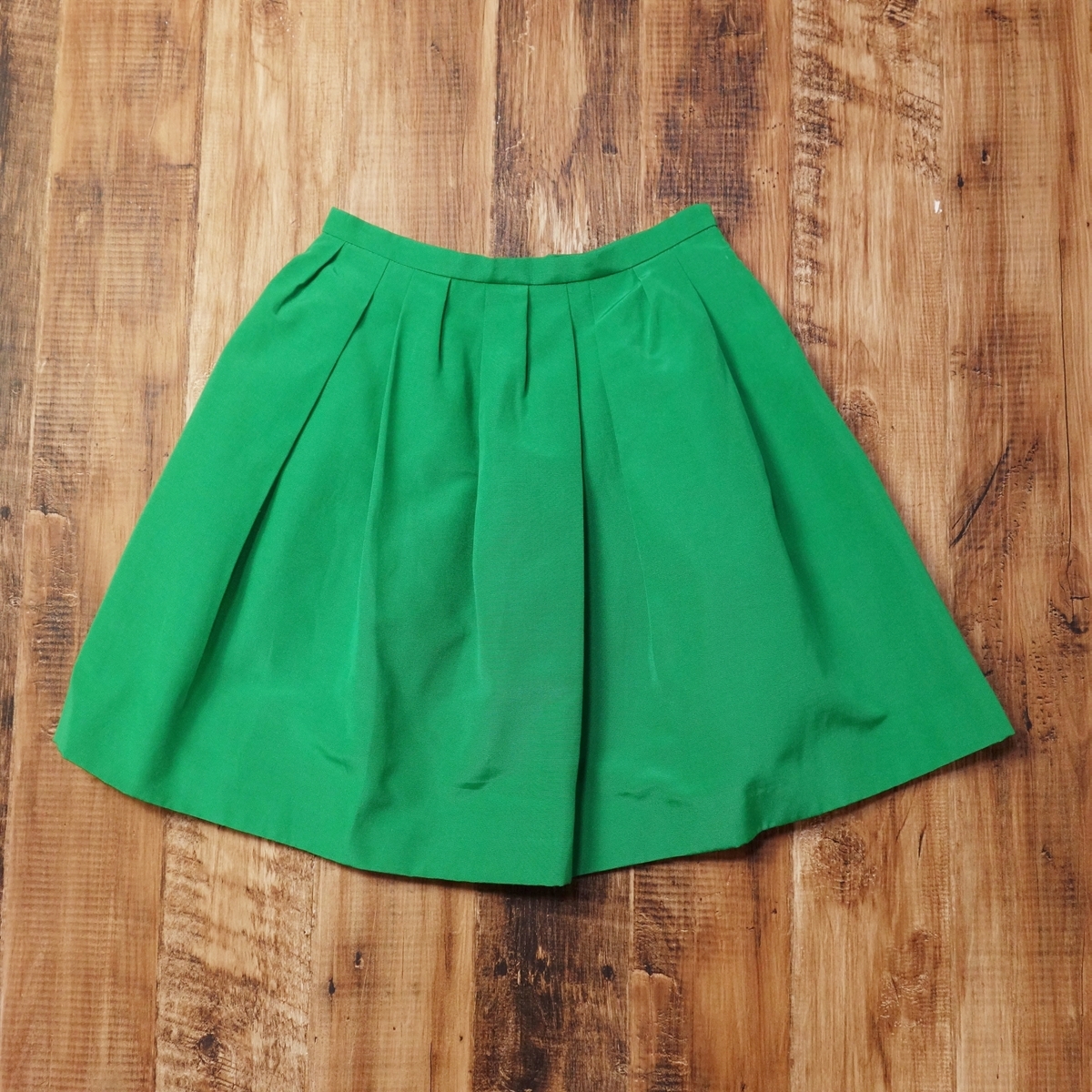 - 美品 アプワイザーリッシェ Apuweiser-riche タックフレアスカート レディース ミニ丈 Aライン ハリ感 1 Sサイズ グリーン LK30