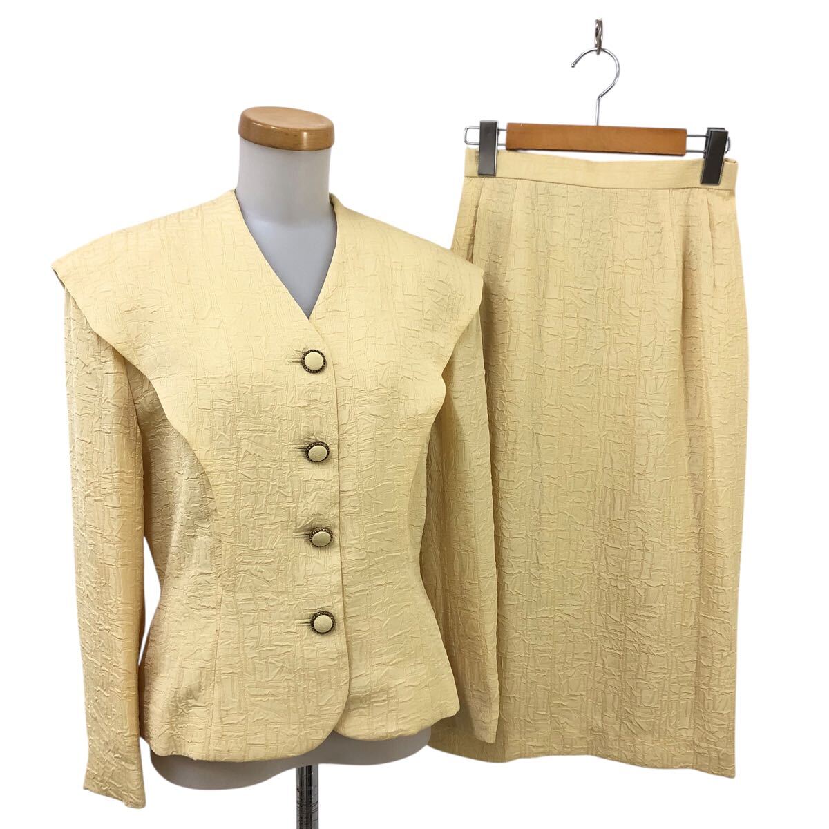 - m636-58 YUKI TORII ユキトリヰ ユキトリイ スーツ 上下セット セットアップ ノーカラー ジャケット スカート ジャガード イエロー 9