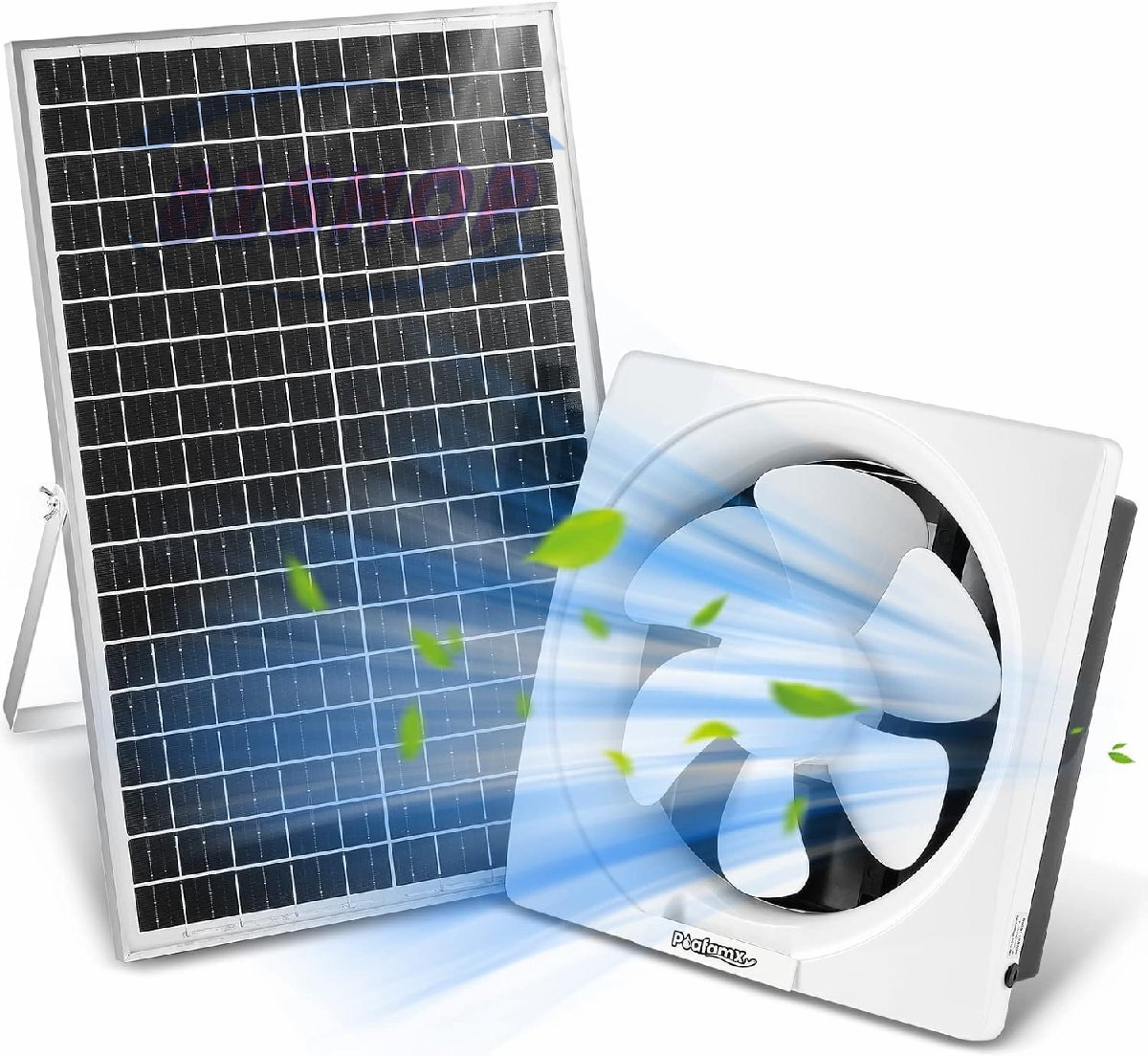 > ソーラーパネルーファン 30wソーラーパネル+10wファン ソーラーバッテリー+電源アダプター両用 パネル調節角度25-45度 温室、屋根裏部屋