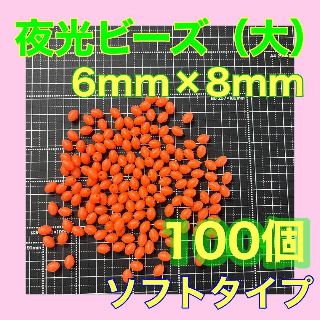 - 夜光ビーズ シモリ玉 6mm×8mm(大)L ソフト ビーズ 赤 レッド 小物