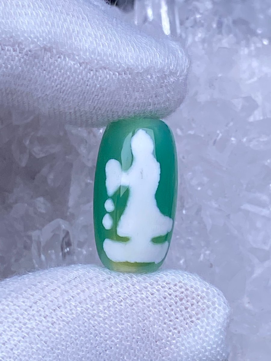 - 即決 0531f933 新入荷★【チベット緑玉髄双面観音天珠】★ 19.5x10.7mm(新品)