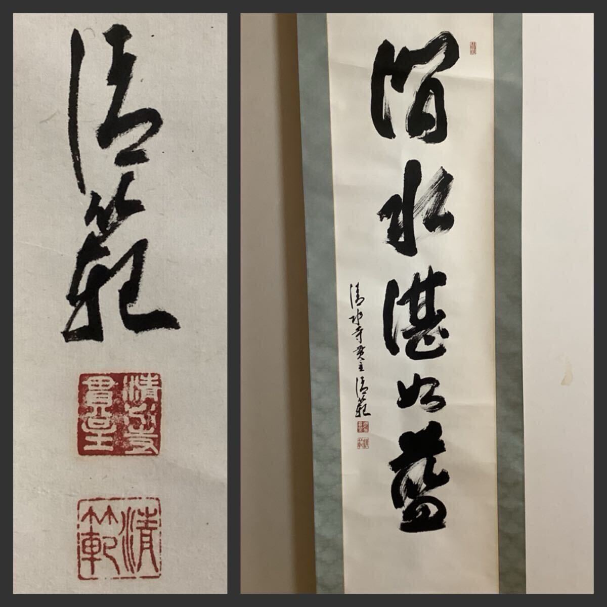 > 【模写】掛軸Jul746B[森清範 澗水湛如藍]紙本 書いたもの 木箱/仏画 仏教美術 茶掛 茶道具 清水寺貫主 北法相宗管長 墨蹟