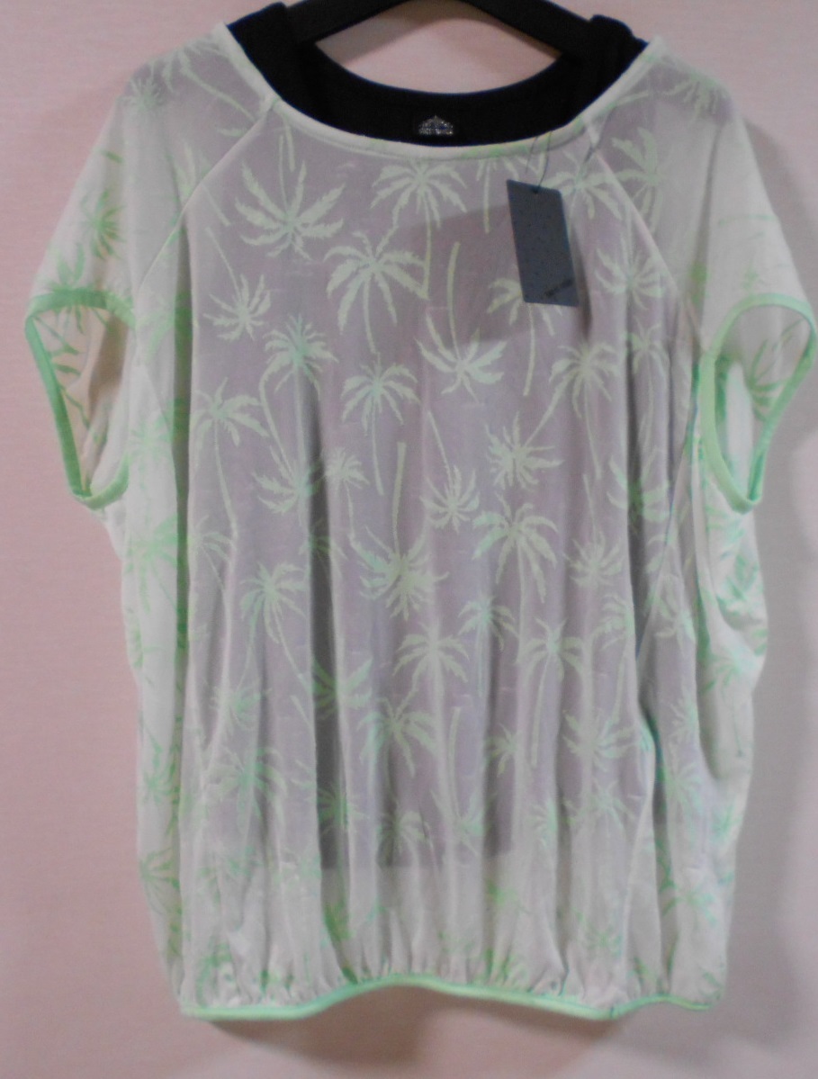 > ヤシの木デザイン トップス アンサンブル M ☆彡タグ付き新品 インナータンクトップ付き 夏 リゾート ビーチに水着に