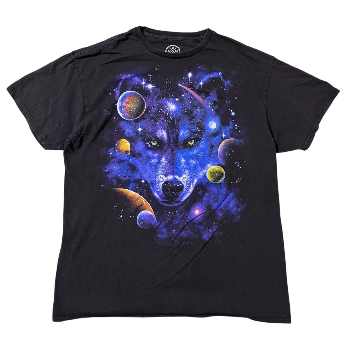 - アメリカ古着 狼 オオカミ 宇宙 半袖 Tシャツ アニマル プリント ビッグプリント Lサイズ コットン 【I1824】