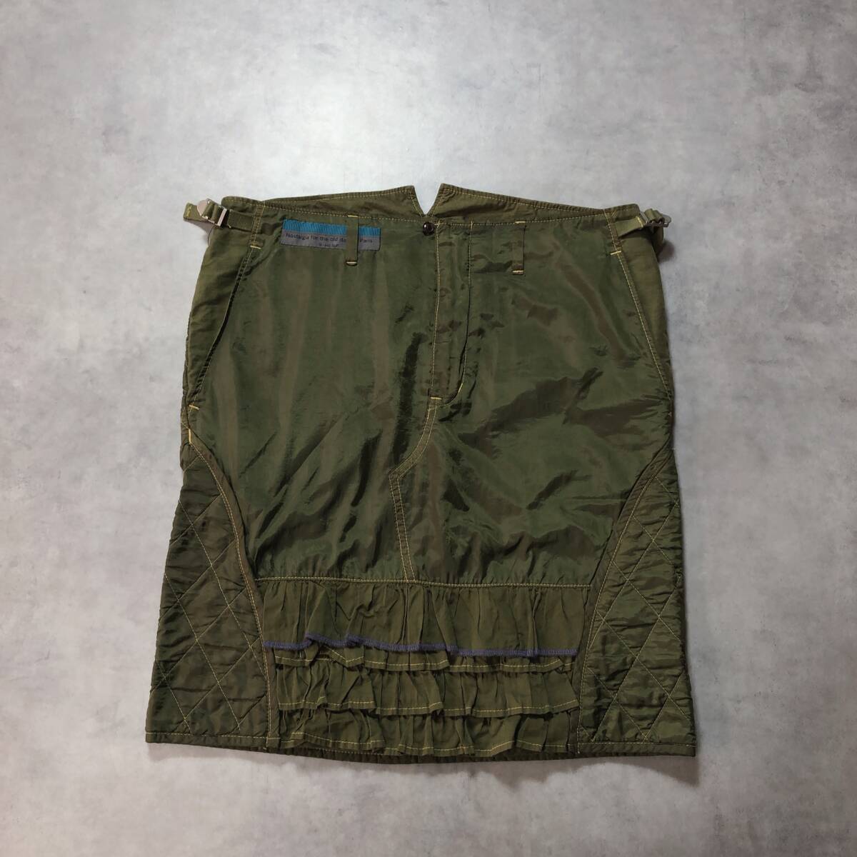 - WQ534●SI-HO SUP:異素材切替キルティングスカート ●2● カーキ 膝丈スカート シーホープス