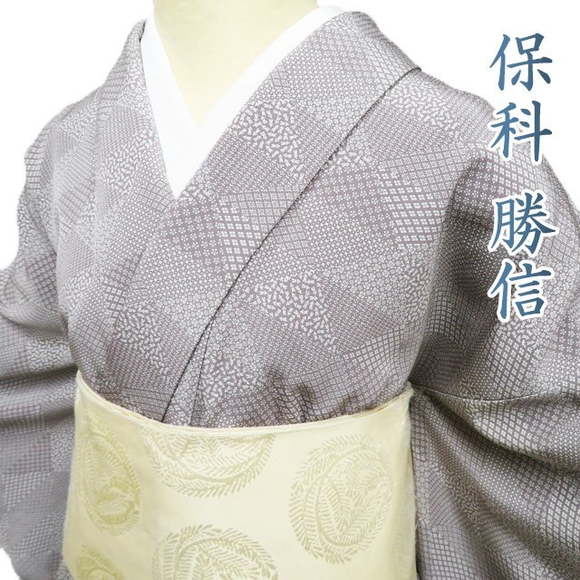 > 小紋 江戸小紋 着物 中古 袷 保科勝信 落款 鱗取り 松葉 花 菱 茶鼠色 身丈165.5cm 裄67.5cm L トール ワイド きもの北條 A1233-4