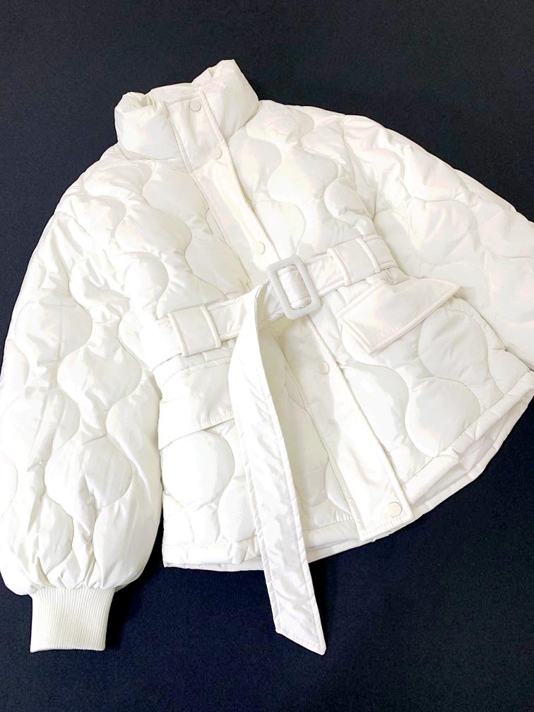 - 美品 CLEA クレア CL22340069 ウエストベルトハイネックキルティング中綿 コート sizeM/アイボリー ◆■