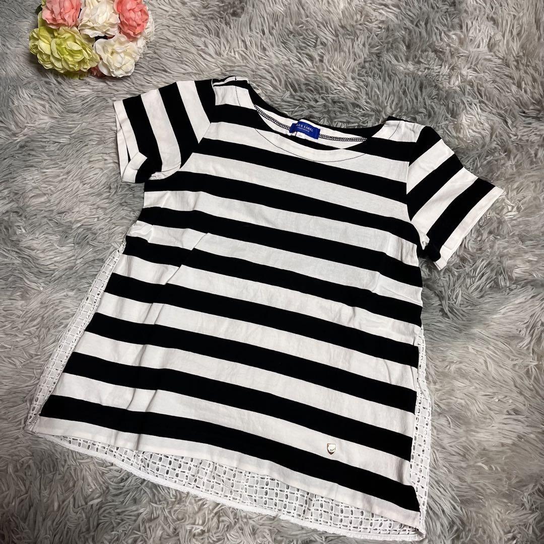 - ブルーレーベルクレストブリッジ ボーダー半袖カットソー Tシャツ レース