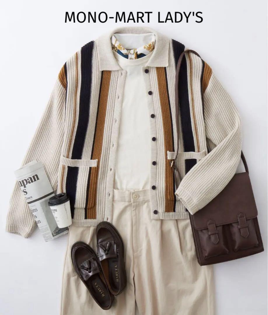 - 【新品】モノマートレディース マルチストライプポロニットカーディガン