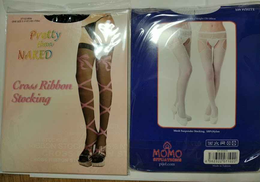- クロスリボンストッキング&メッシュサスペンダーストッキング 白 ストッキング2枚セット