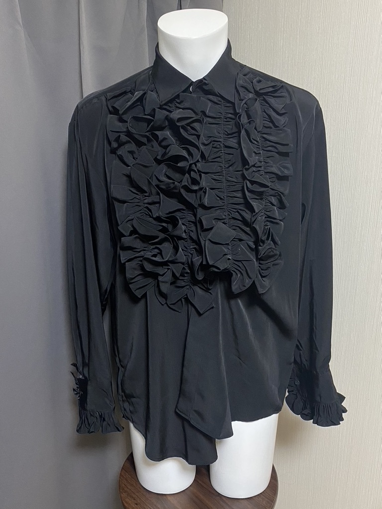 - ★ブランド不明 黒 フリル シャツ【H0003】