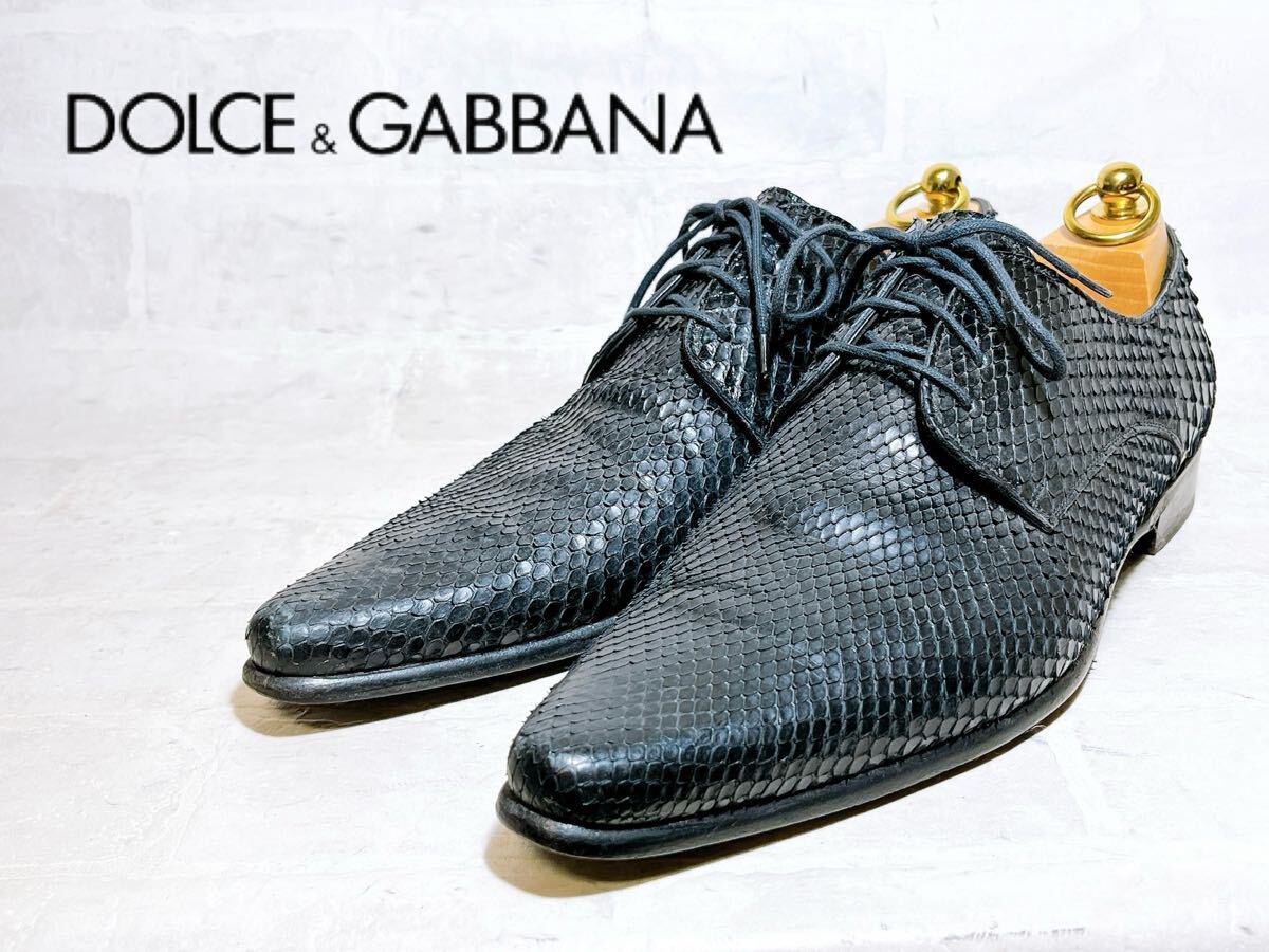> イタリア製【美品】DOLCE & GABBANA ドルガバ 最高級 リアルパイソンレザー 蛇革 ビジネスシューズ 黒 UK6.5(約25cm)メンズ