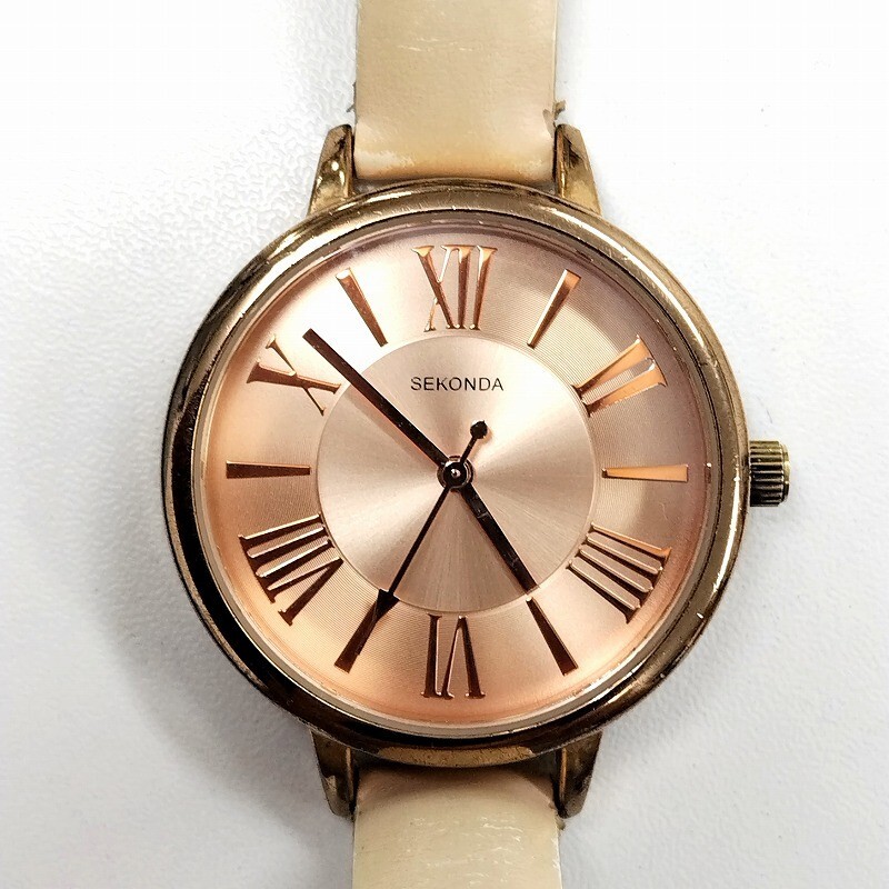 - セコンダ(SEKONDA) ローマンインデックス レディースクォーツ NK2355 ピンクオレンジ 【中古】 JA-19413