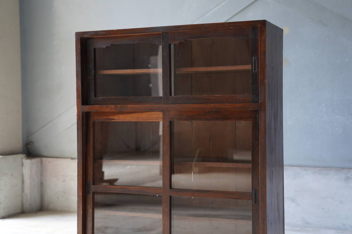 - ガラス棚 食器棚 ヴィンテージ アンティーク 飾り棚 ディスプレイ 古家具 古道具 ヴィンテージ家具 インテリア 古木