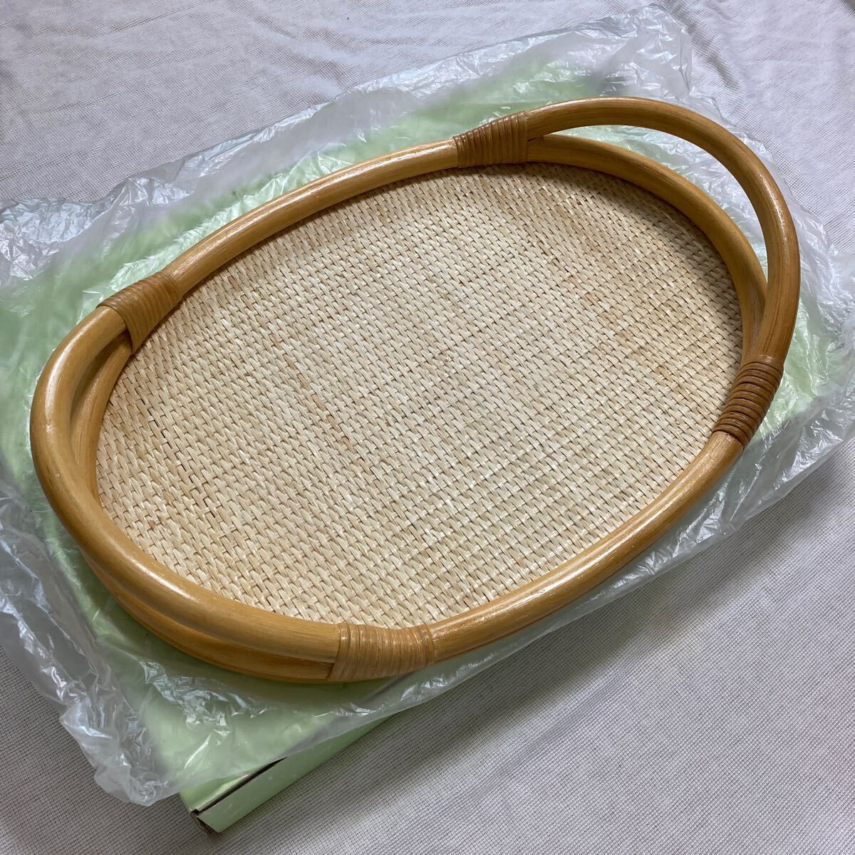 - ナチュラルなラタントレイ 約44×31cm 雑貨 お盆 籐 ハンドル 持ち手 ランチトレー カフェ オシャレ アジアン
