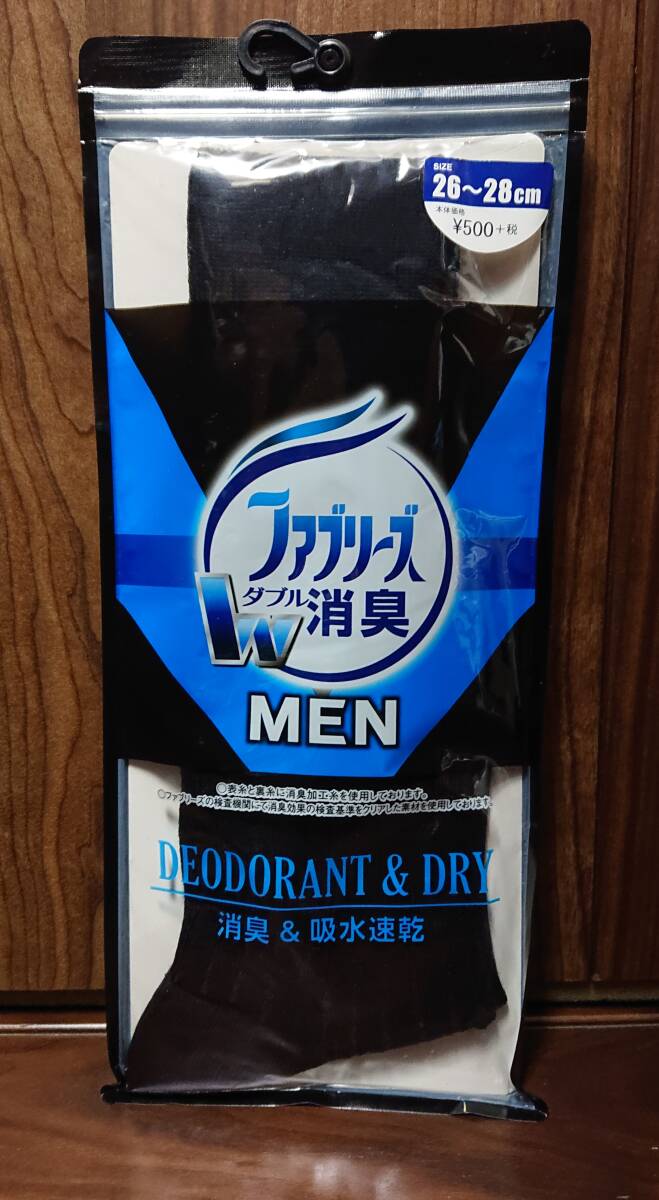 > 【送料無料】夏の男足に! ファブリーズ ダブル消臭 デオドラント ソックス メンズ 紳士 黒 ブラック 26cm~28cm 新品(未開封)