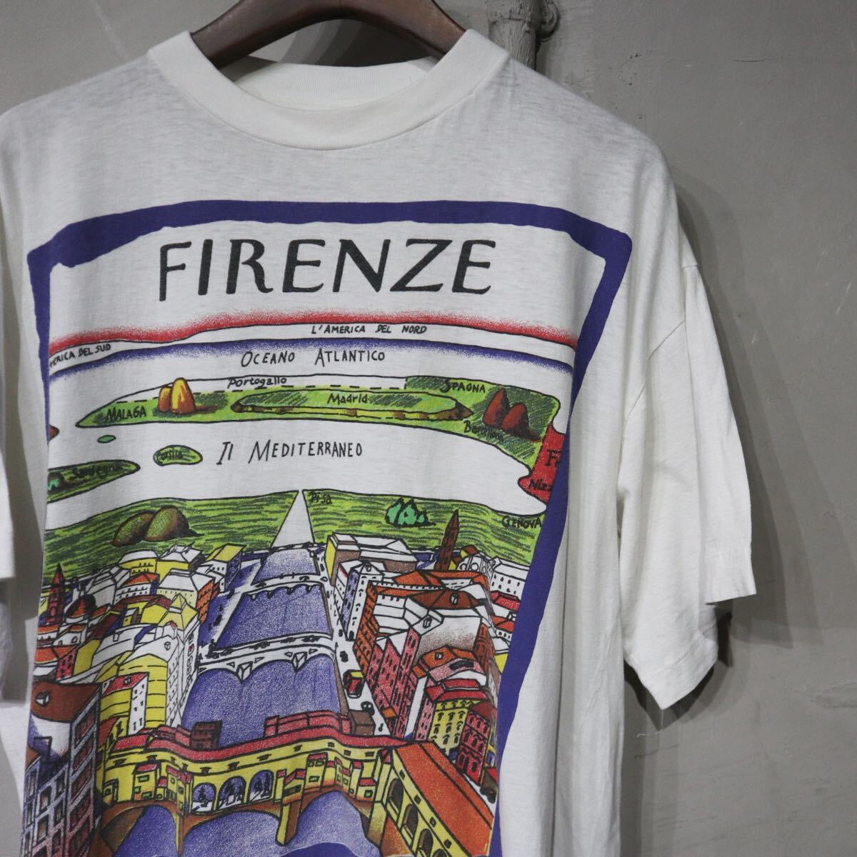 - 【即決】FIRENZE フィレンツェ スーベニア お土産 アート プリント Tシャツ ホワイト 白 シングルステッチ 半袖 ユーロ 古着