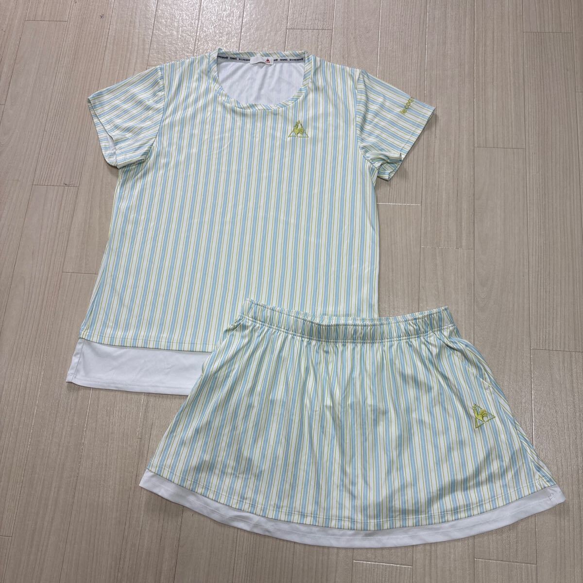 - ルコックスポルティフ lecoqsportif レディース テニスウェア ゲームシャツ スコート セットアップ 上下セット ストライプ柄 サイズO 美品