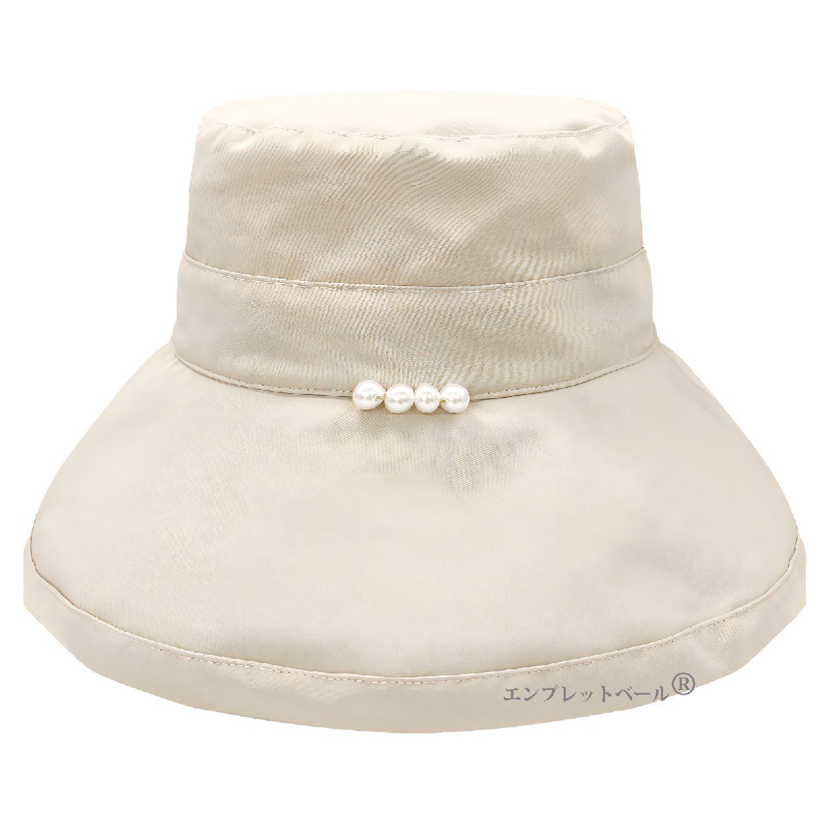 - 長めのツバでしっかり 日焼け防止 遮光ハット パールで大人感 完全遮光100% フリーサイズ 56~58cm エクリュ つば広 春 夏 UVカット