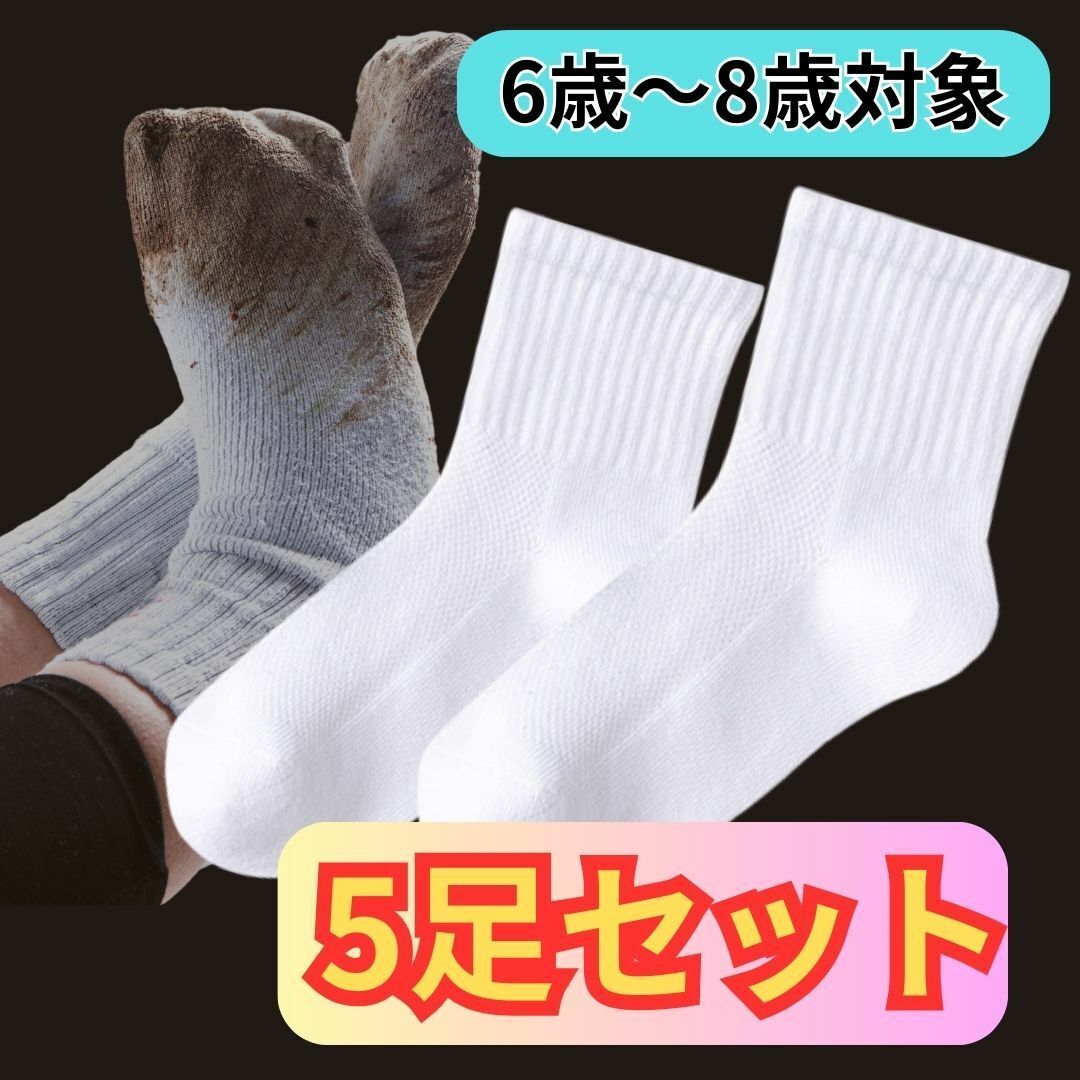 - 260 【6~8歳対象】スクールソックス 5足組 ホワイト 小学生 白 男女兼用 オールシーズン メッシュ素材 通気性 学校低学年 洗い替え
