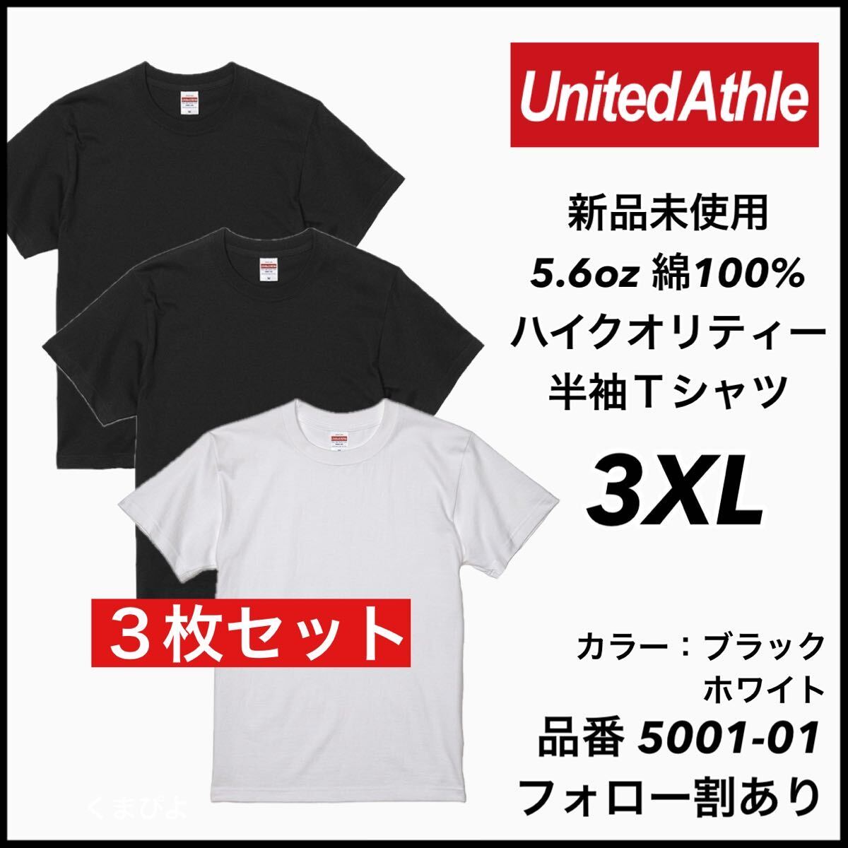 > 新品未使用 ユナイテッドアスレ 5.6oz 無地半袖Tシャツ 3枚セット 3XL サイズ 黒 白 ブラック ホワイト United Athle