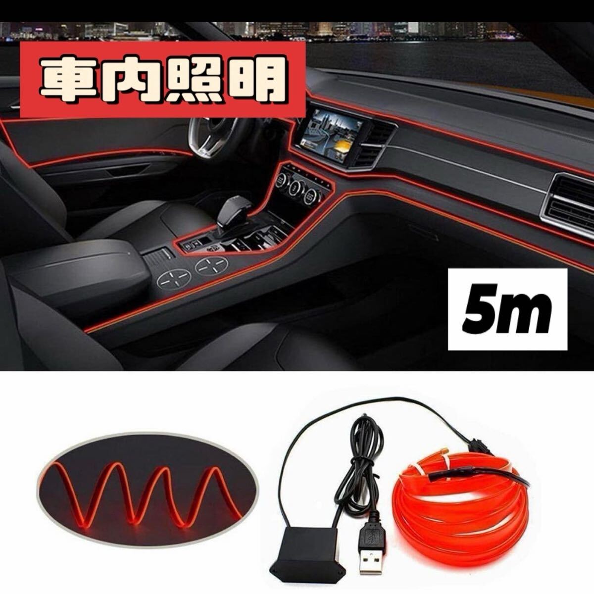 - 車内照明 カーインテリア カーライト カー用品 照明 USB 5m 装飾ライト