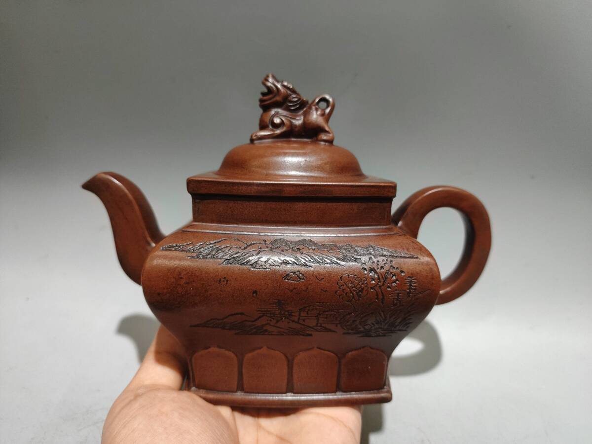 - 蔵友旧蔵出 紫砂壺 四方龍尊壺 顧景舟款 原礦老紫泥 茶道品 煎茶道具 文房賞物 希少珍品 中国古玩 中国古美術品