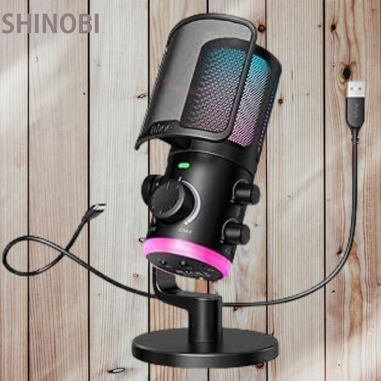 - USBコンデンサーマイク 単一指向性 RGBライティング搭載 音量調整・ミュート機能付き ノイズキャンセリング対応 Windows/Mac/PS4/PS5対応