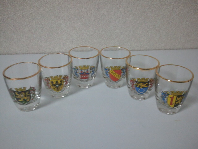 > ☆r☆【美術工芸・ガラス工芸】フランス製 ショットグラス 6個/冷酒 リキュール 酒器インテリア ワンショット 猪口 テキーラ☆