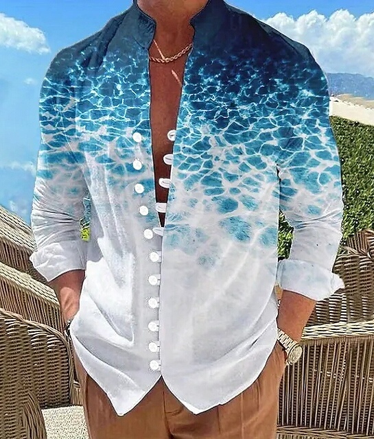 > (5月下旬入荷) マオカラー 長袖シャツ 白×青 060 シャツ ドレスシャツ ヤクザ ヤンキー オラオラ系 服 派手 メンズ ファッション