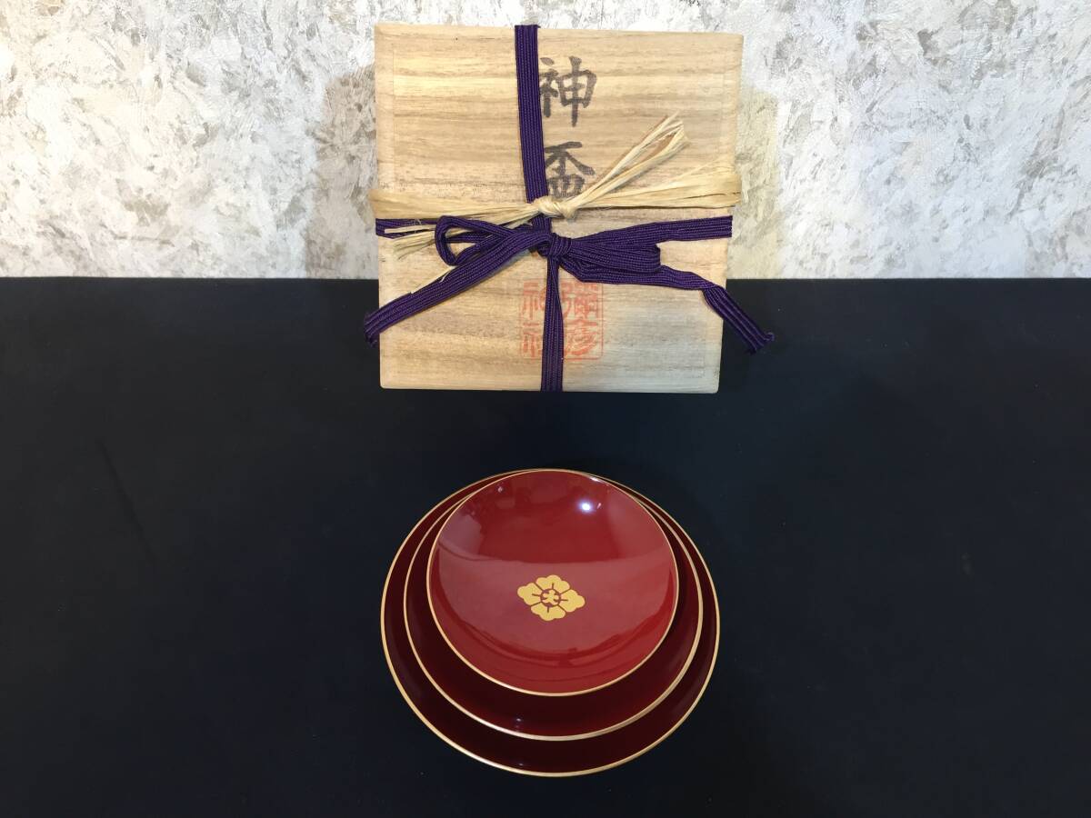 - 『 神盃 』酒器 お神酒 漆器 お猪口 大中小 伝統工芸 漆芸 記念品 縁起物 アンティーク レトロ 箱付 ★古時家★