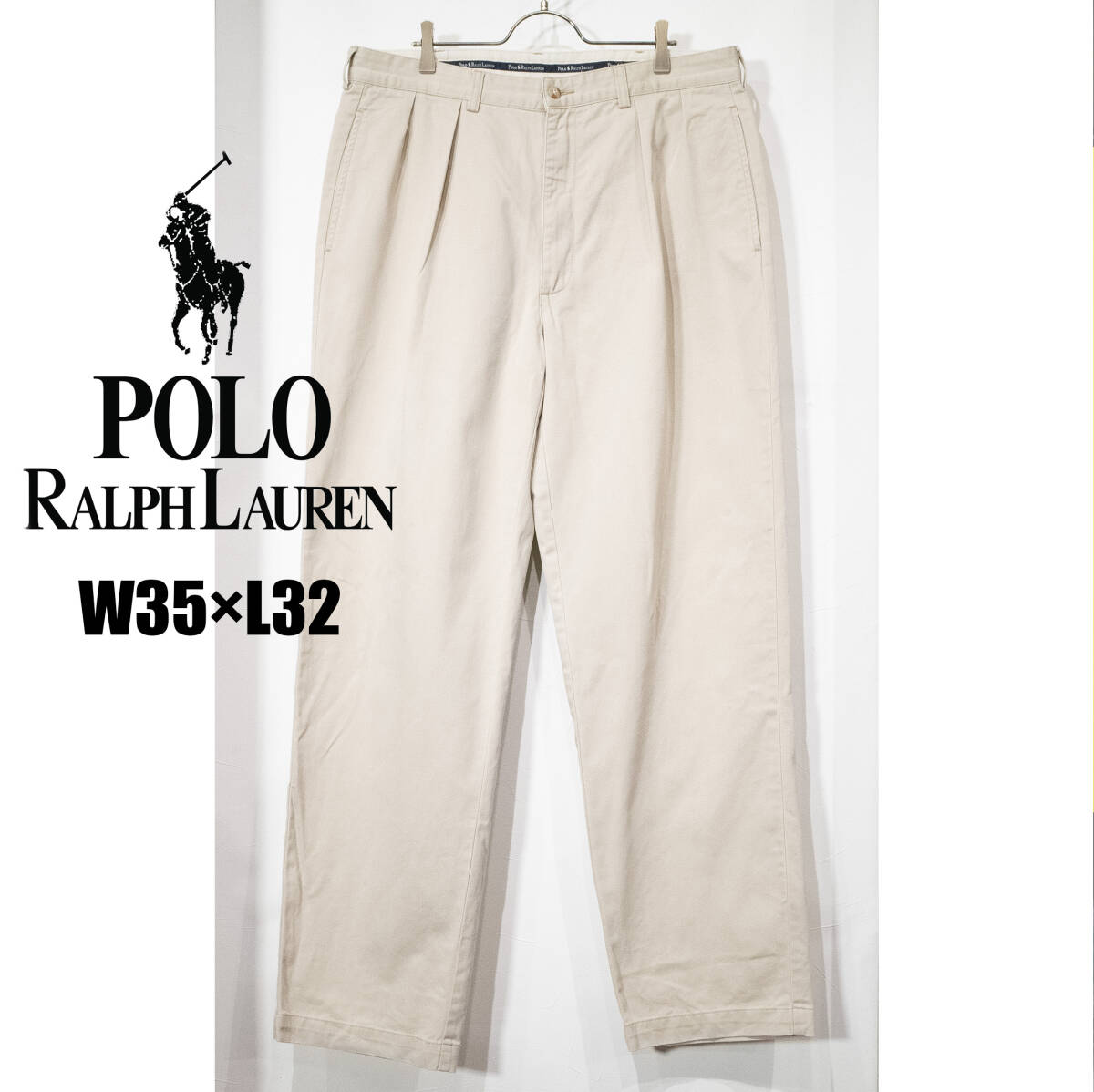 > W35 L32 / 90s Polo by RALPH LAUREN ラルフローレン ポロチノ タック コットン ワイド パンツ ANDREW アンドリュー 古着 ベージュ